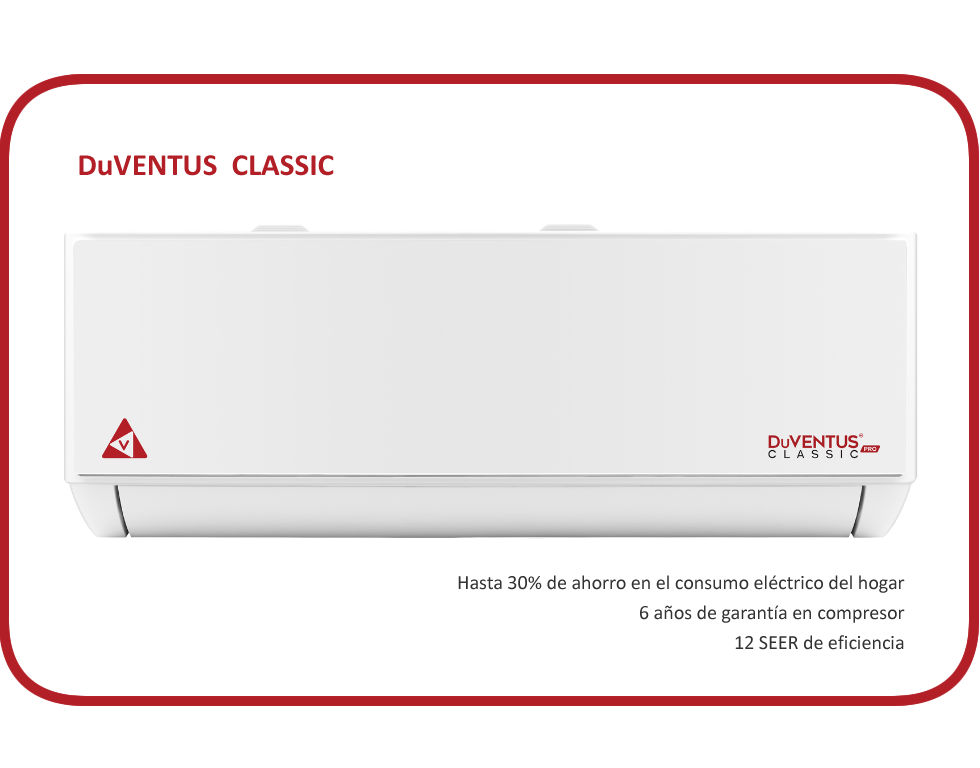 Productos Los minisplits de DUVENTUS incorporan la última tecnología en componentes y funciones, todo ello diseñado para ofrecerte el máximo confort.